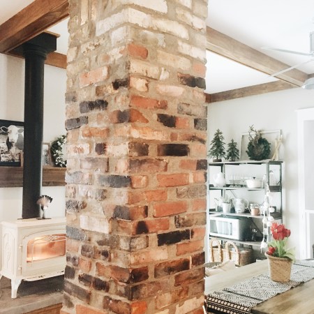 Hello all! Many have asked how did we refinish the chimney? So, I thought I would share what we did!