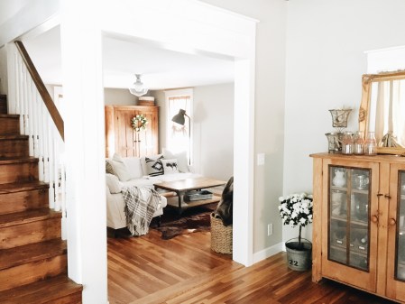 Hello! And welcome to my first home tour. Here at the back door I stand in our mudroom. This used to be the old dining room and I wanted sooo badly to turn this into a mudroom. Knowing I dreamed of a family and kids, I asked Doug if we could have a mudroom sink. He granted my wish, but now asks, “why have one if we can never use it?!” Thats allllll my fault, friends. Because of my plant fetish, those that die I place the ones that die in the sink; not being able to let go or plant them outside during the harsh Michigan winter! Sorry Doug, but it will be spring soon. ; )