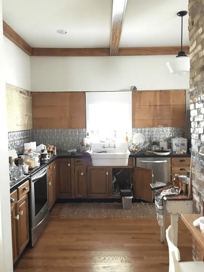 I had to put a fake tin backsplash up a year after moving in with formica over the old old nasty formica. Just someeethingggg to help until we saved and saved and saved for a new kitchen!